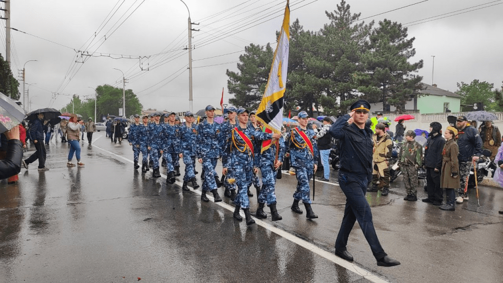 Торжественные мероприятия в Бендерах начались на площади Освобождения. Дождь не смог помешать людям пройти 9 Мая с портретами родных в едином строю. В «Бессмертном полку»